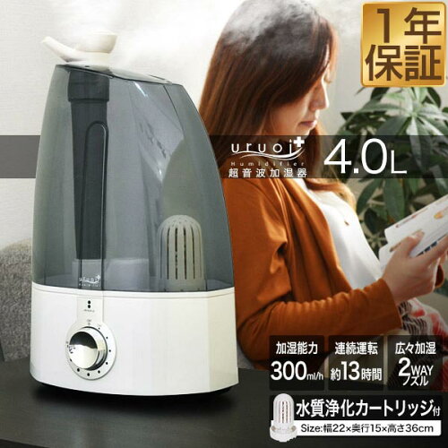 1年保証 加湿器 超音波加湿器 シリーズ累計13.6万台販売! 4L 連続使用13時間 小型 おしゃれ うるおい 卓上 オフィス 機能付 エコ 4リットル タンク 大容量 超音波 インテリア うるおい 床置き 大量 法人 ■[送料無料]